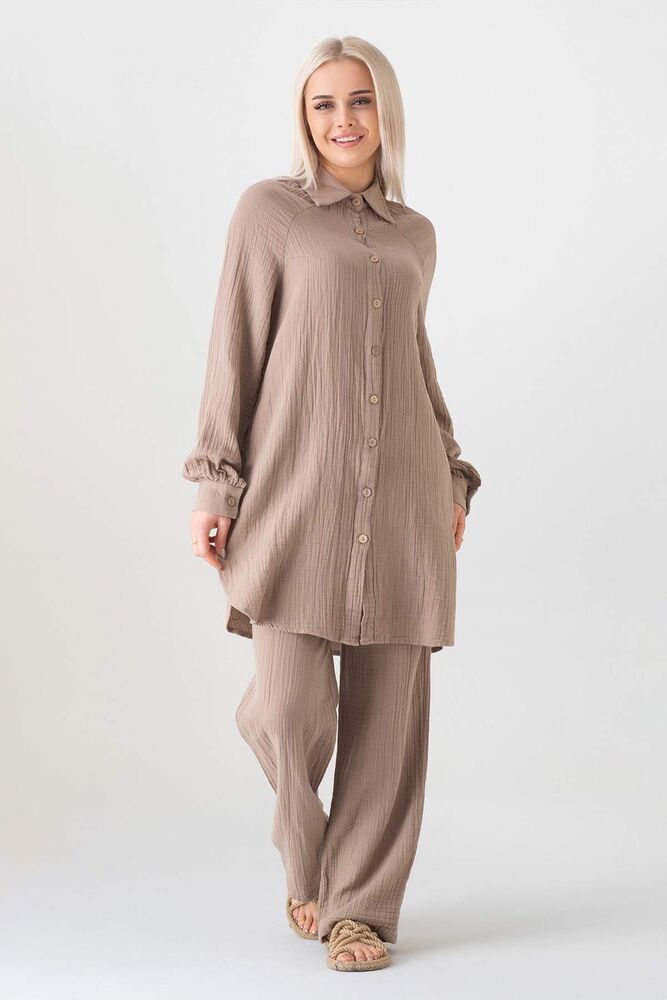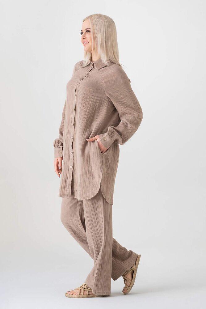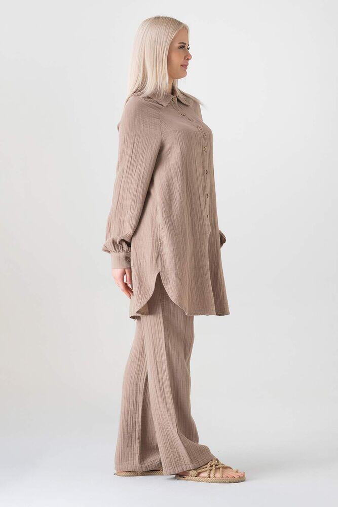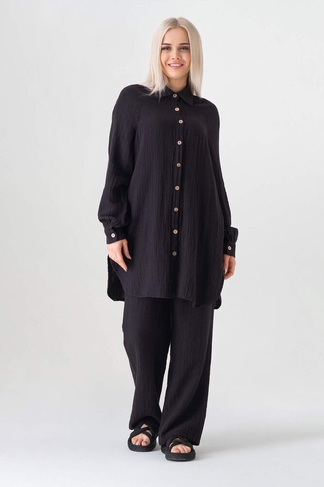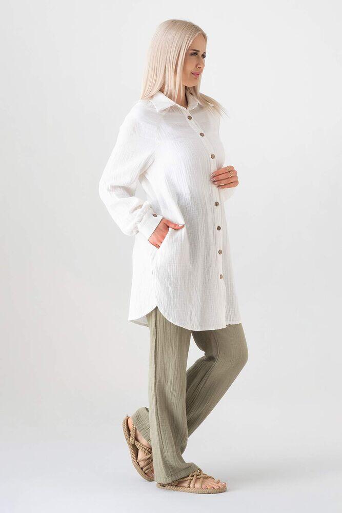 Müslin organik %100 Pamuk kumaştan üretilmiştir. Natural yapısı sayesinde geri dönüşümü destekler. Düğmeleri organik hindistan cevizi kabuğundan üretilmiş olan müslin kadın gömlek tüm yaş gruplarına yaz aylarında kaliteli vakit geçirmeyi garanti eder. Tesettür gömlek olarak da kullanılabilir ve tüm alanlara hitap eder.
