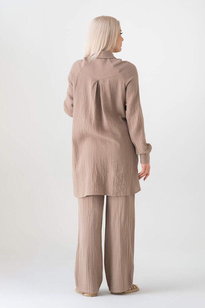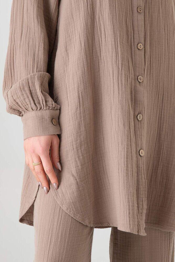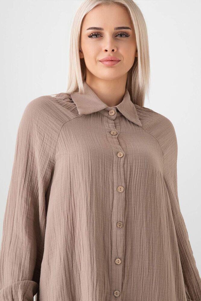 عندما تأتي اخبرنيMüslin Kumaş %100 Pamuk Reglan Kol Bayan Gömlek