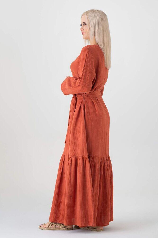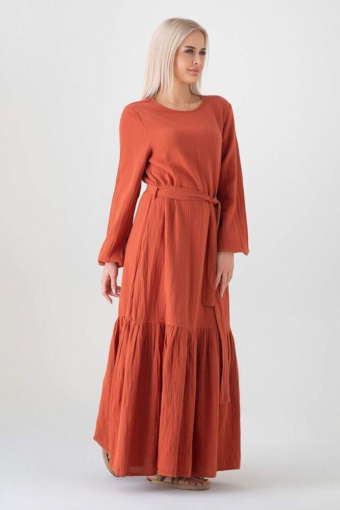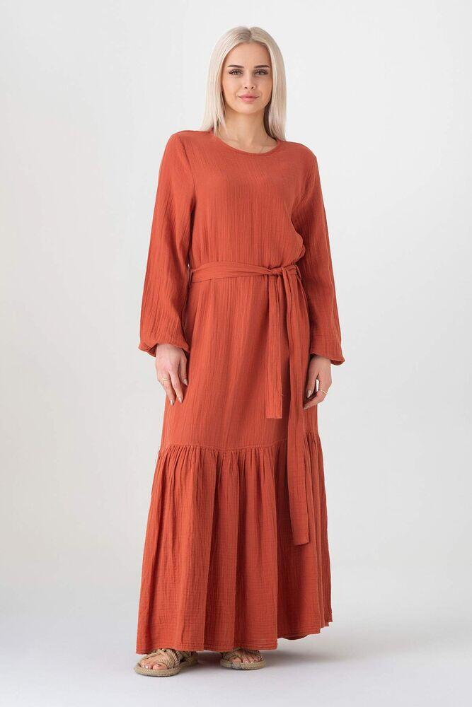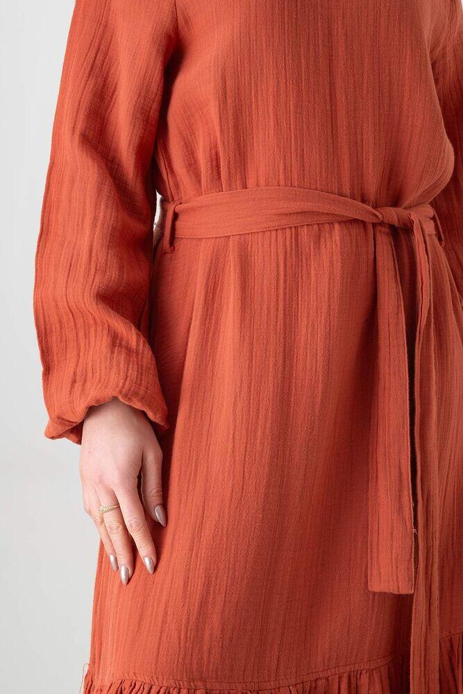 Gelince Haber VerMüslin Kumaş Eteği Büzgü %100 Pamuk Günlük Yazlık Tesettür Elbise