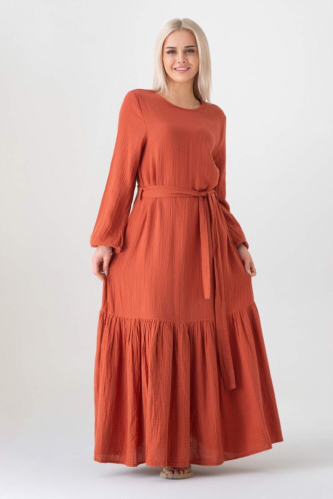 Yaz sıcaklarına özel rahatlık ve şıklığı bir arada sunan Müslin Kumaş Eteği Büzgü %100 Pamuk Günlük Yazlık Tesettür Elbisesi ile tanışın!