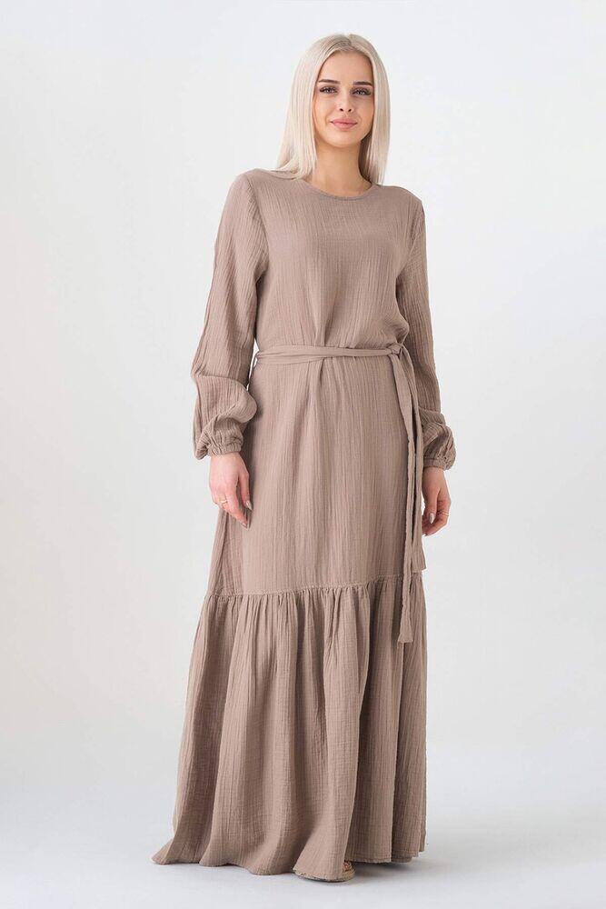 Yaz sıcaklarına özel rahatlık ve şıklığı bir arada sunan Müslin Kumaş Eteği Büzgü %100 Pamuk Günlük Yazlık Tesettür Elbisesi ile tanışın!