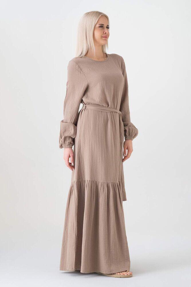 Gelince Haber VerMüslin Kumaş Eteği Büzgü %100 Pamuk Günlük Yazlık Tesettür Elbise