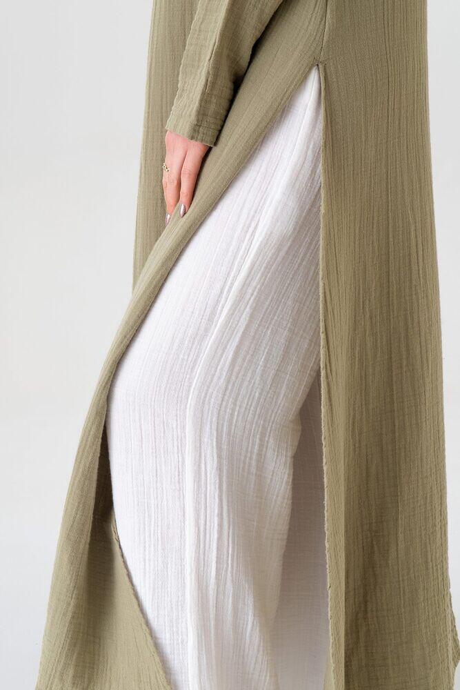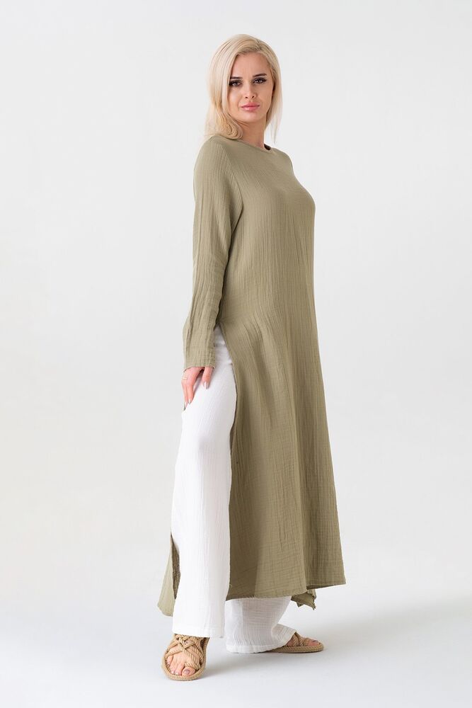 Müslin Kumaş Yandan Yırtmaçlı %100 Pamuk Tesettür Uzun Tunik