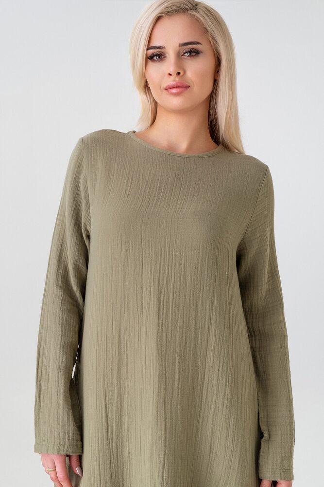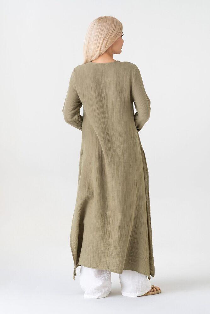 Müslin Kumaş Yandan Yırtmaçlı %100 Pamuk Tesettür Uzun Tunik - Yeşil - WNR2501