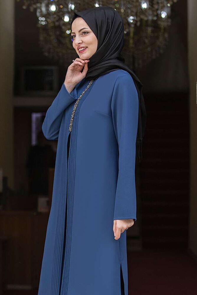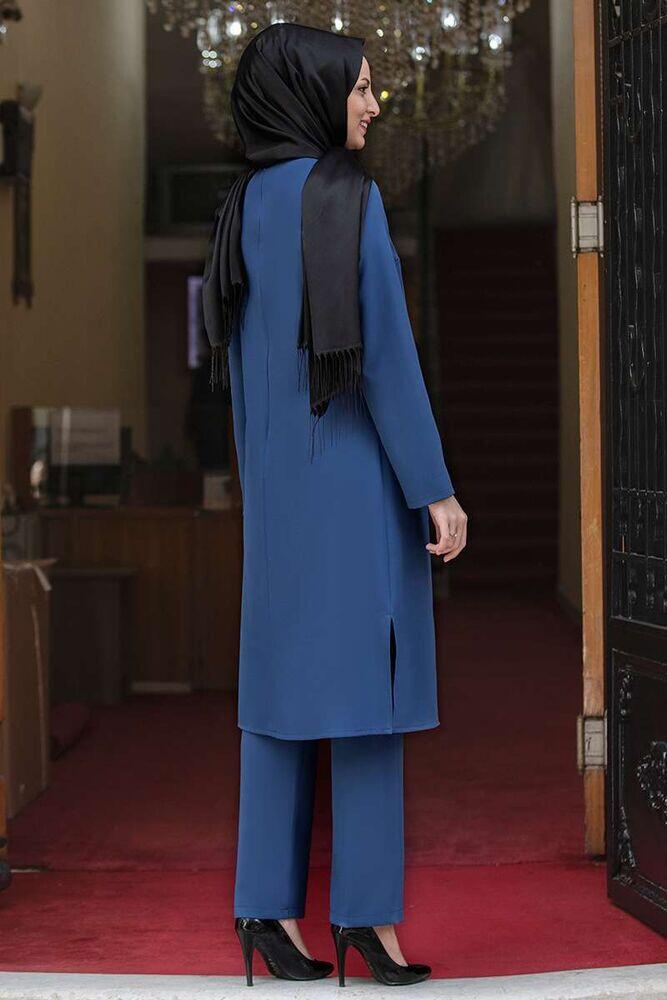 Nervürlü Taş Detay İkili Takım İndigo FSC2066