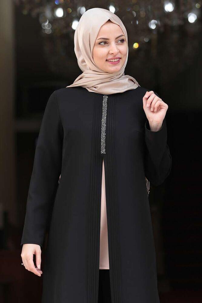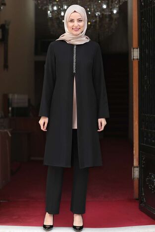 Nervürlü Taş Detay İkili Takım Siyah FSC2066