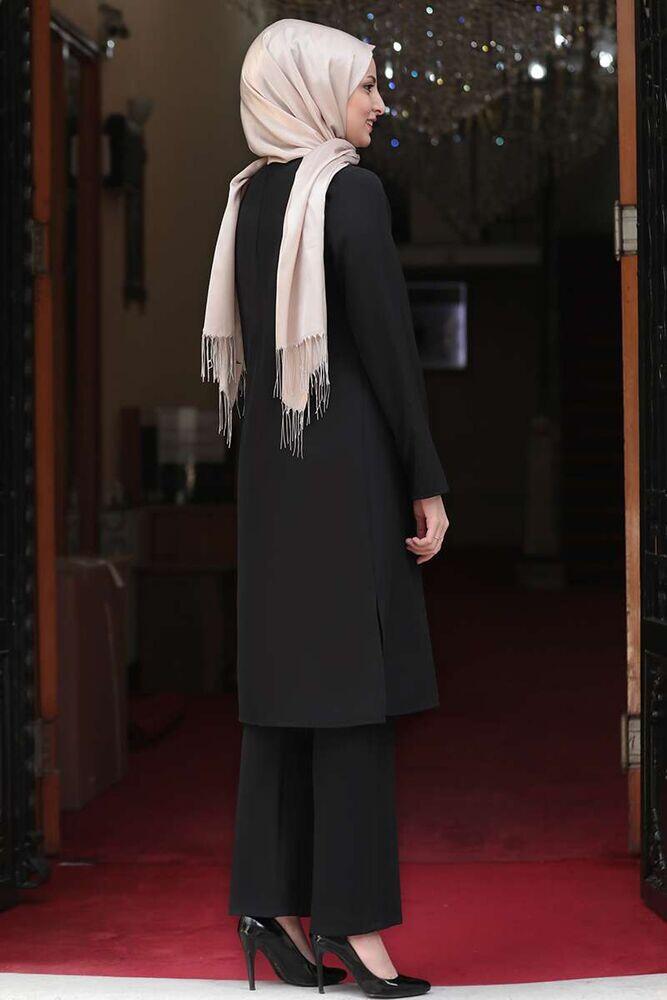 Dabıl krep kullanılarak üretilmiştir. içerisinde bulunan tunik görünümlü parça birleşiktir. Rahat kalıptır ve kendi bedeninizde sipariş vermeniz önerilir. Tunik boyu 120 cm, Pantolon Boyu 105 cm. Manken boyu 178 cm dir.