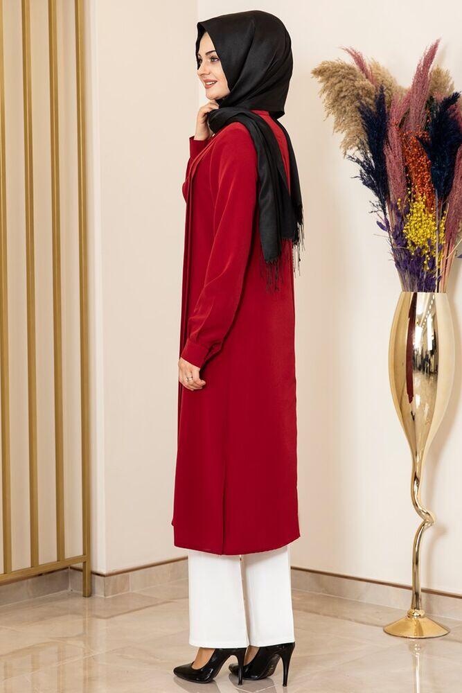 Nervürlü Uzun Tunik Bordo - Fashion Showcase Design - FSC2074