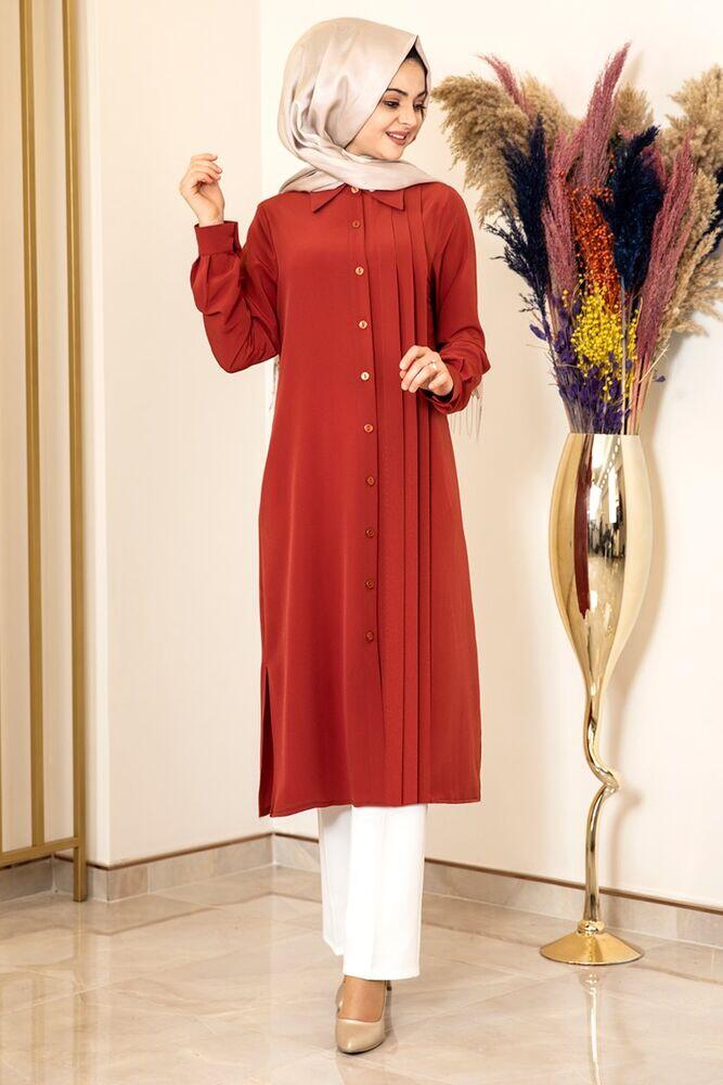 Nervürlü Uzun Tunik Kiremit - Fashion Showcase Design - FSC2074