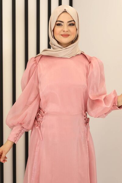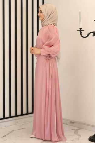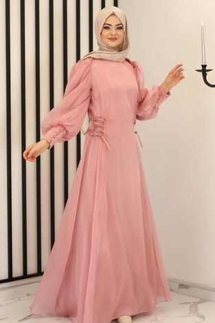 Nil Yandan Bağcıklı Abiye Pudra - Fashion Showcase Design - FSC3008