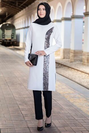 Resimdeki ürünün ölçüleri: Beden: 38, Tunik Göğüs: 98 cm, Bel: 96 cm, Boy: 68 cm Etek: Bel: 72 cm , Boy:106 cm