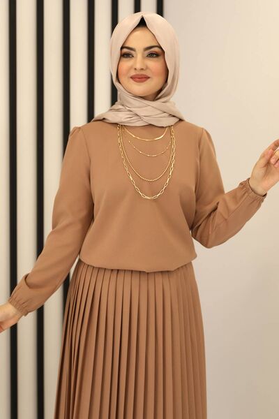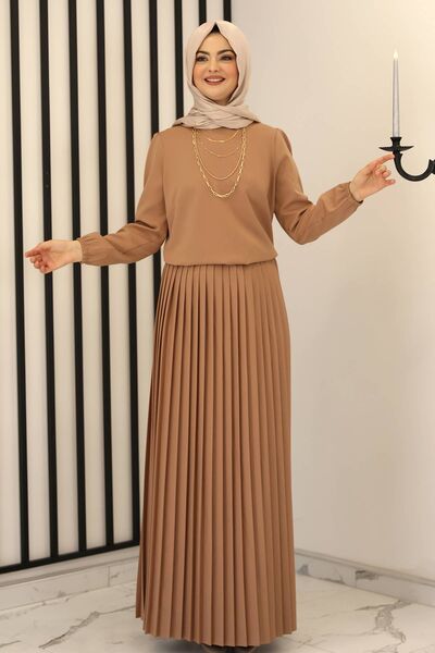 Gelince Haber VerPiliseli Etek - Hakim Yaka Tunik İkili Takım