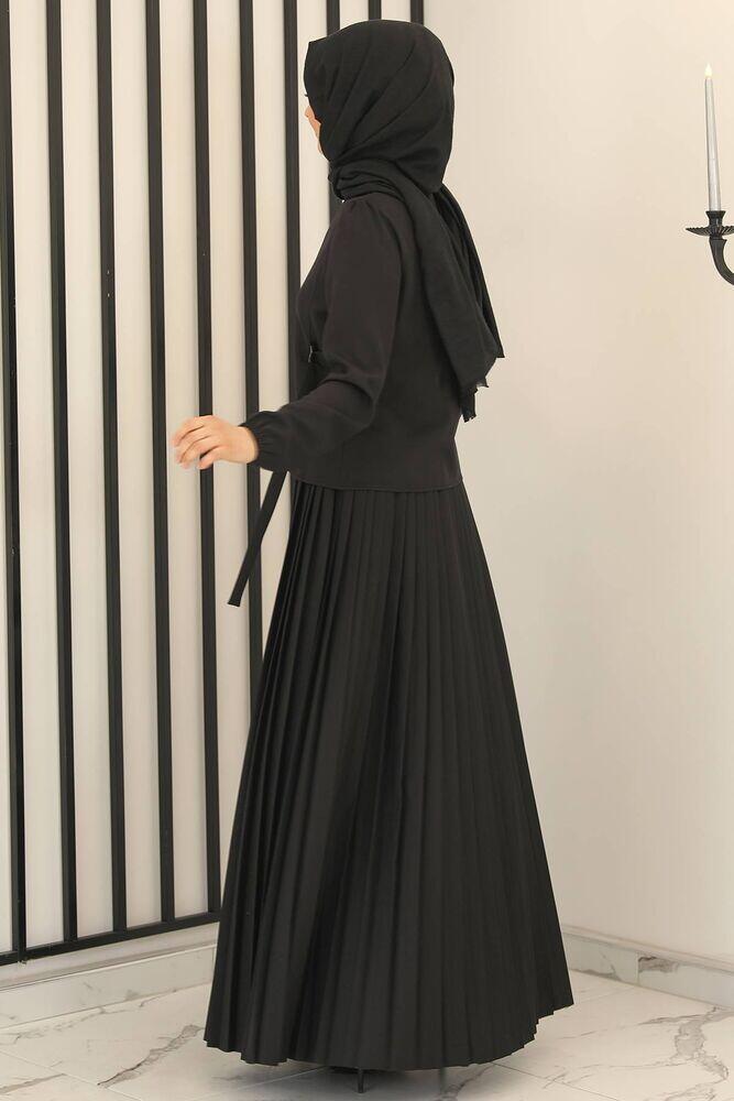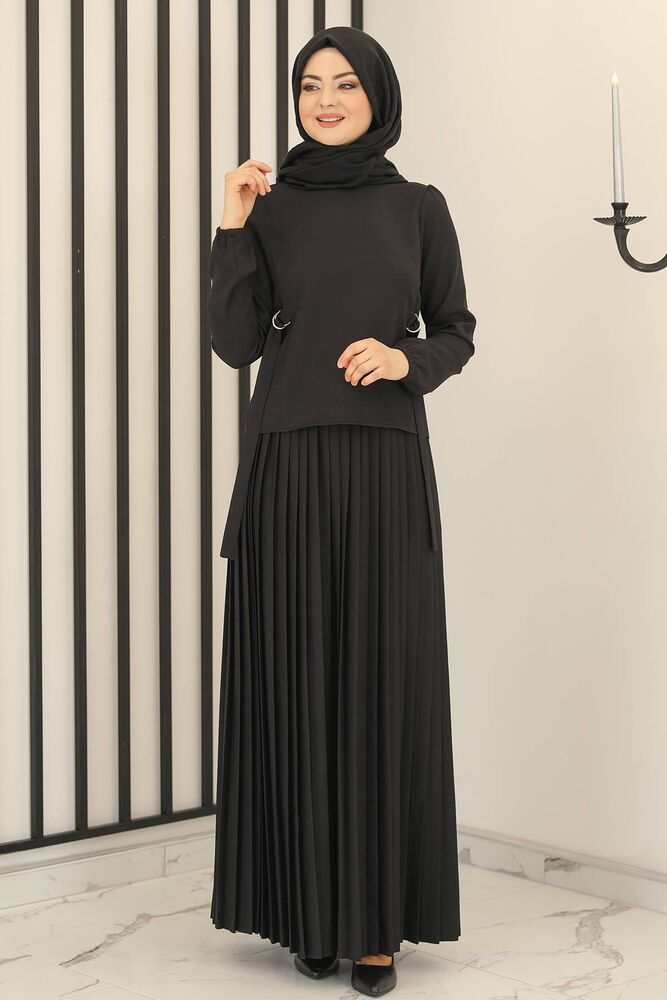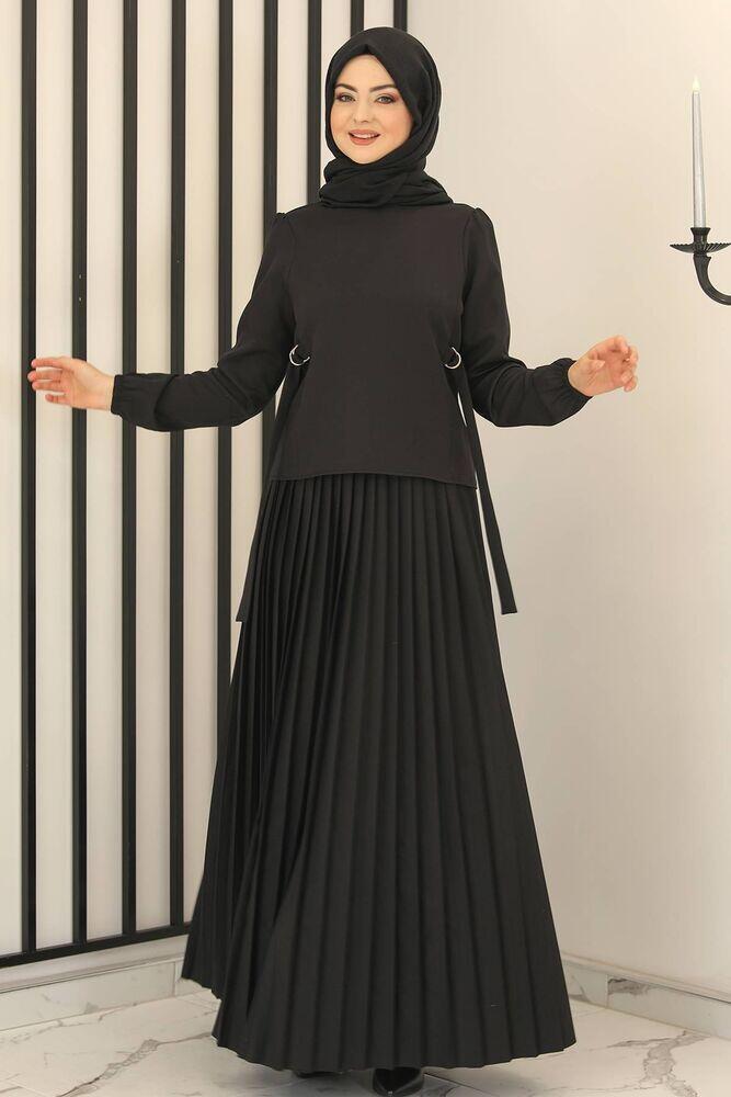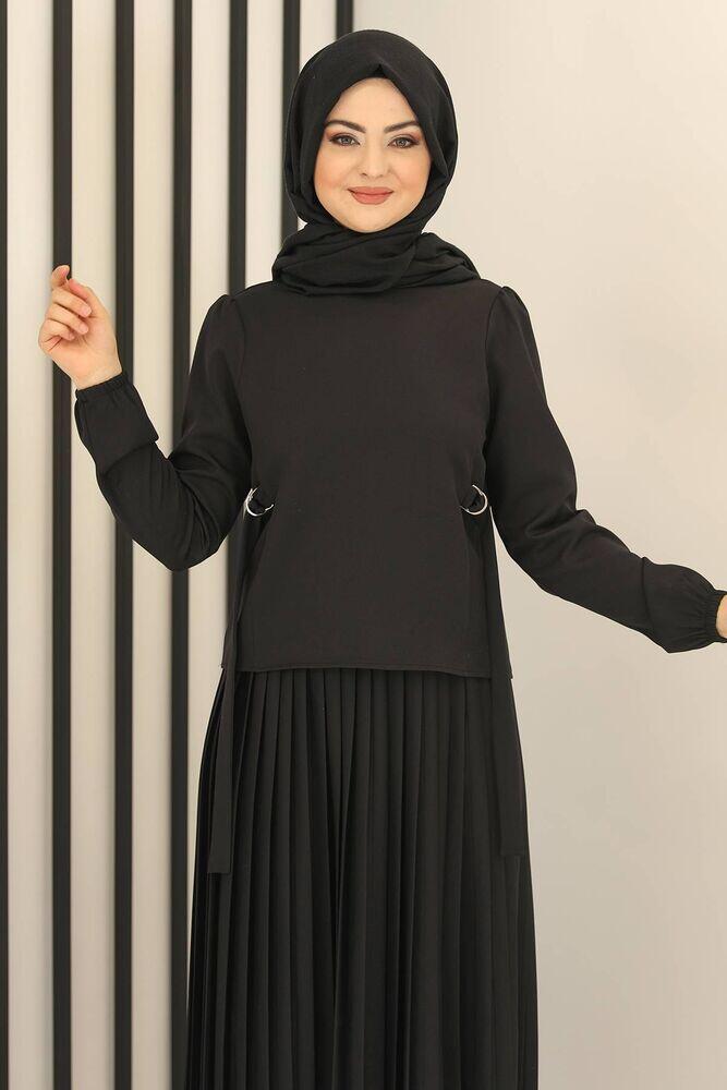 Piliseli Etek - Toka Detay Bluz İkili Takım Siyah - Fashion Showcase Design - FSC3013