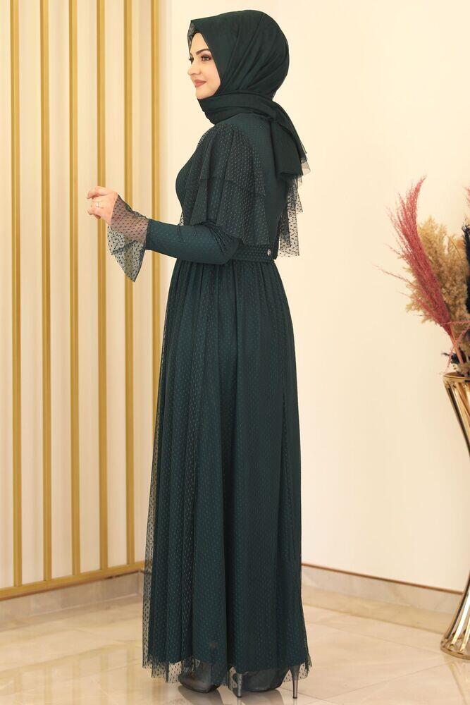 Puanlı Tül Abiye Petrol - Fashion Showcase Design - FSC2117