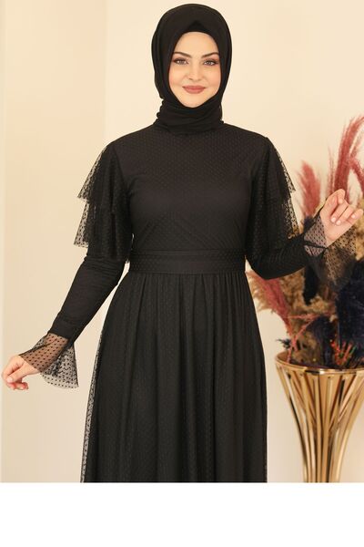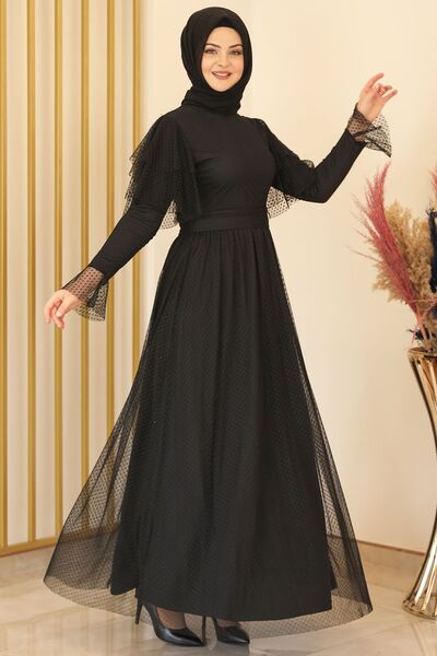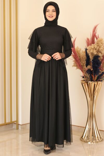Puanlı Tül Abiye Siyah - Fashion Showcase Design - FSC2117