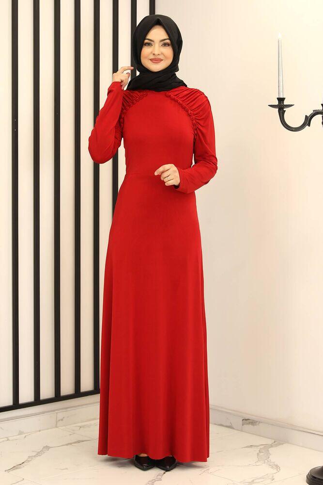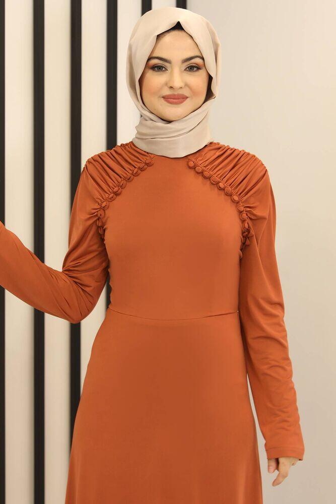 Reglan Kol Abiye Elbise Kiremit - Fashion Showcase Design - FSC3014