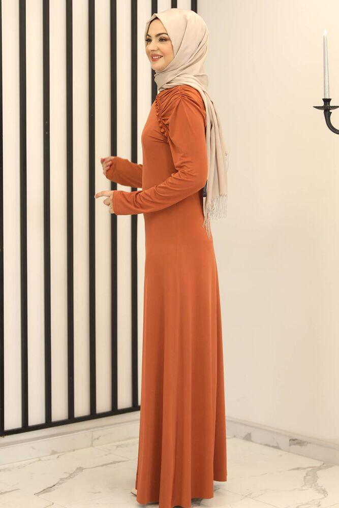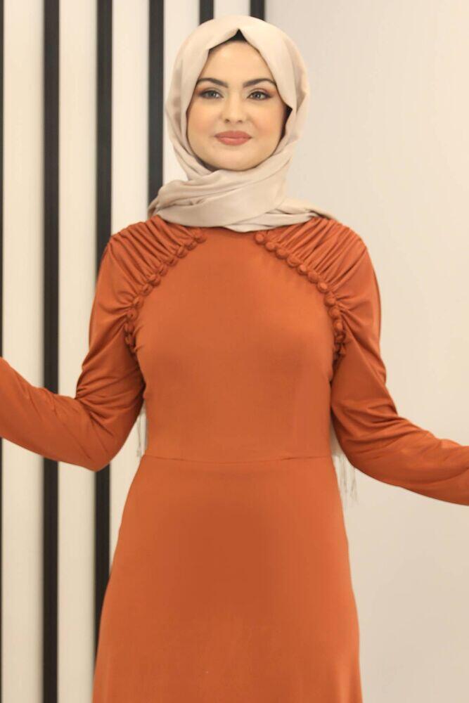 Reglan Kol Abiye Elbise Kiremit - Fashion Showcase Design - FSC3014