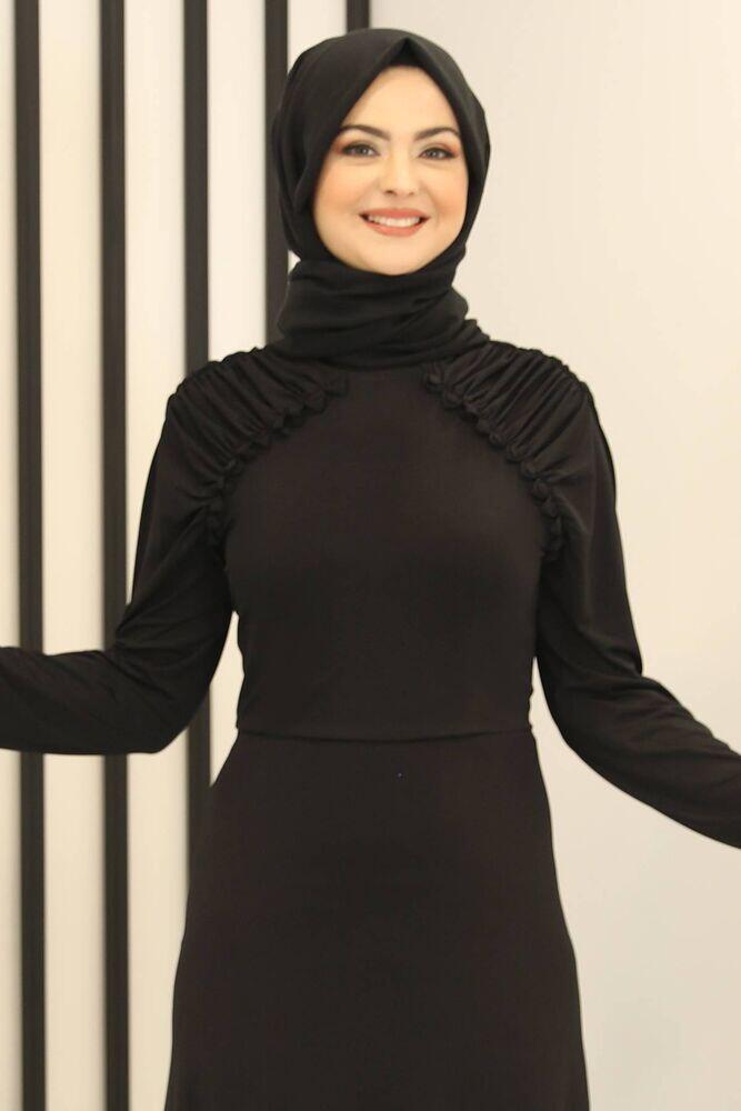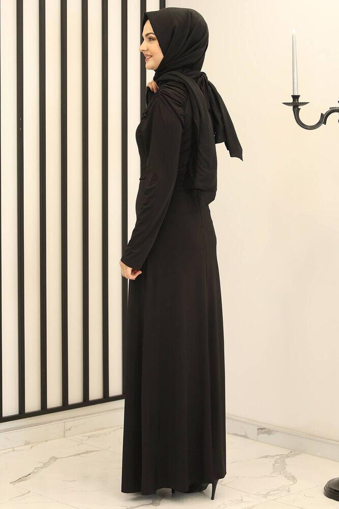 Reglan Kol Abiye Elbise Siyah - Fashion Showcase Design - FSC3014