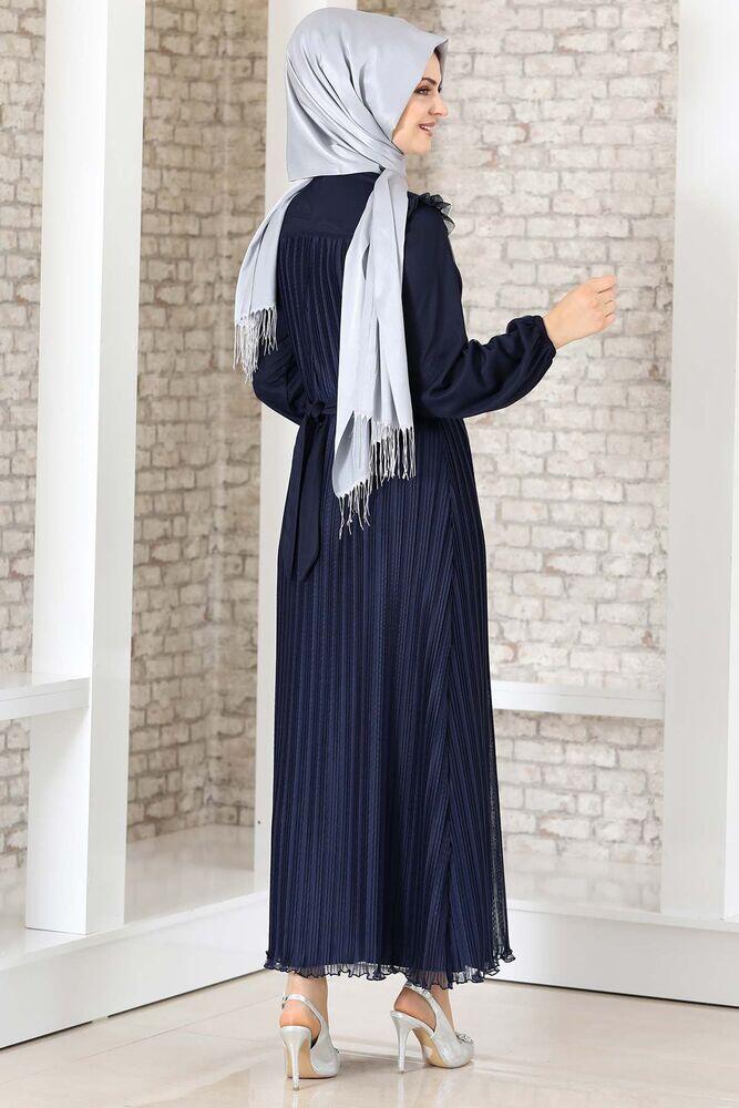 Robalı Boydan Piliseli Lady Abiye Elbise Lacivert - Fashion Showcase Design - FSC3036