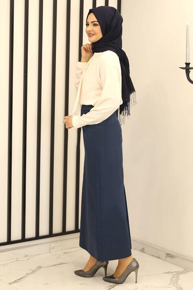 Saten Kalem Etek Lacivert - Fashion Showcase Design - FSC3018