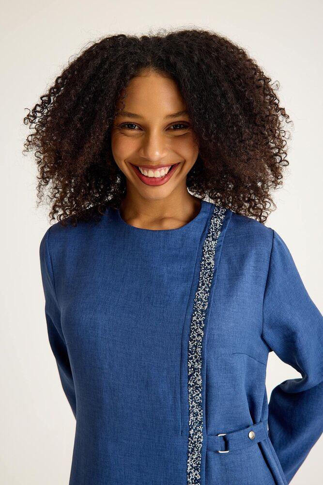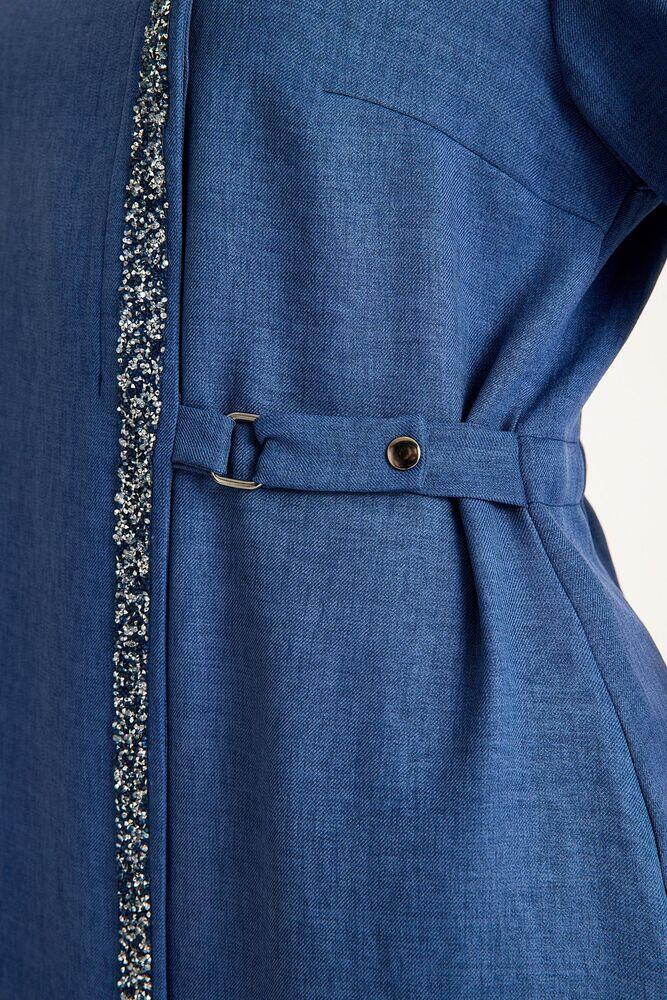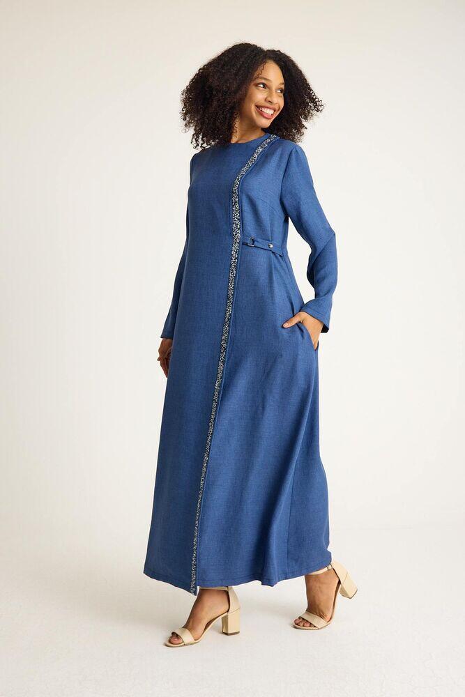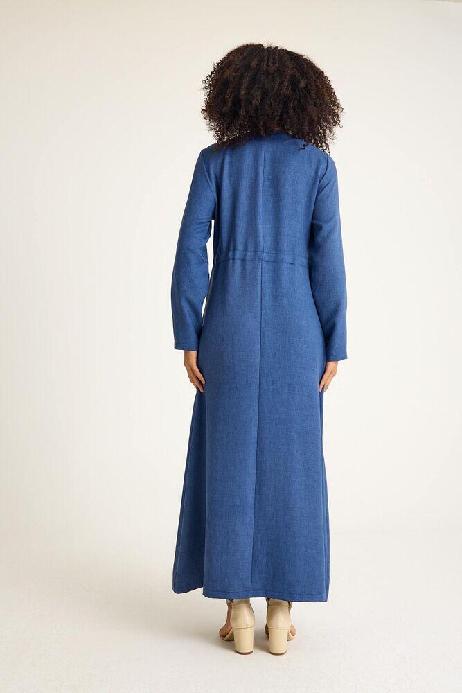 Taş Detay Bağcıklı Abaya Uzun Elbise Ferace - İndigo - FSC3138