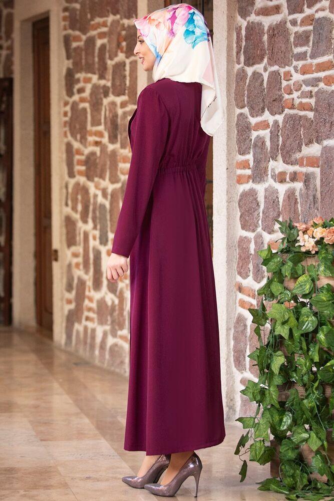 Taş Detay Bağcıklı Ferace Mürdüm FSC2042