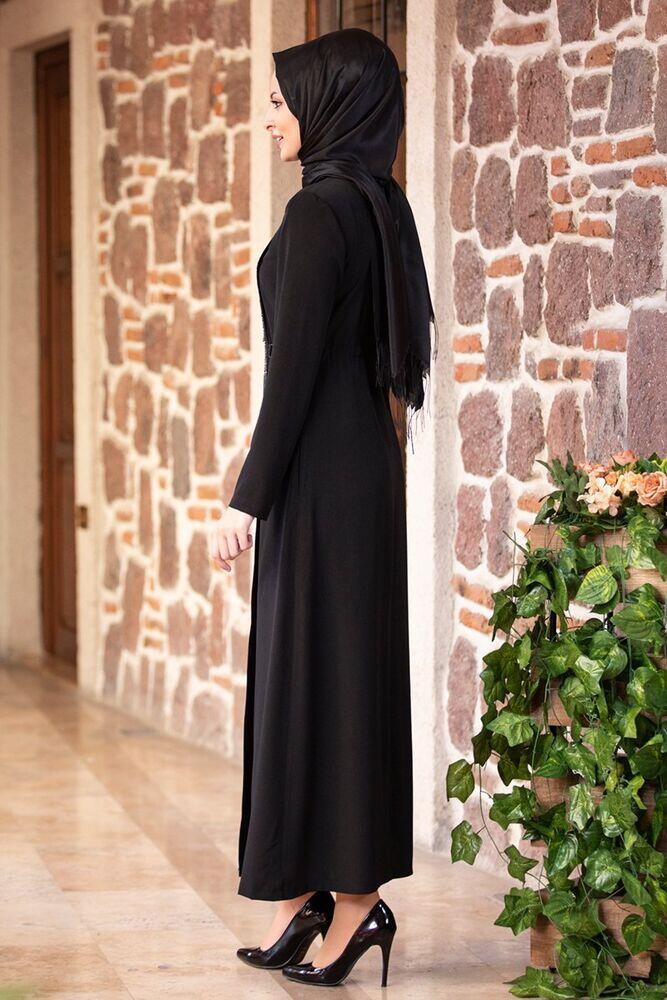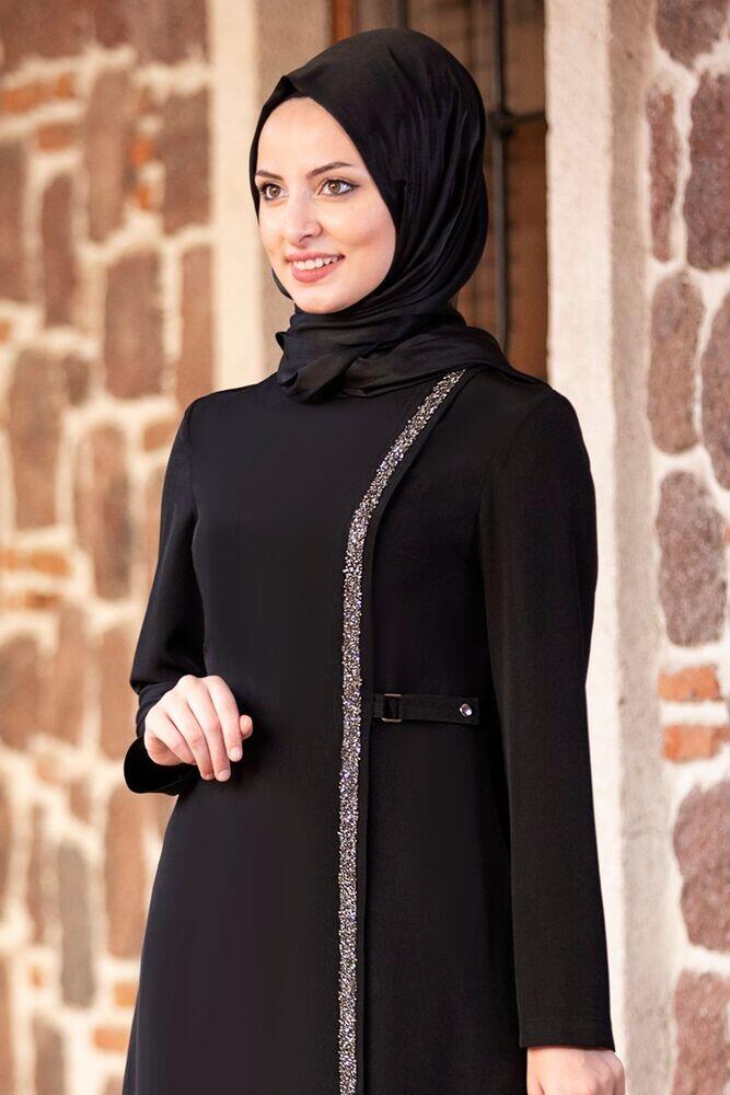 Taş Detay Bağcıklı Ferace Siyah FSC2042