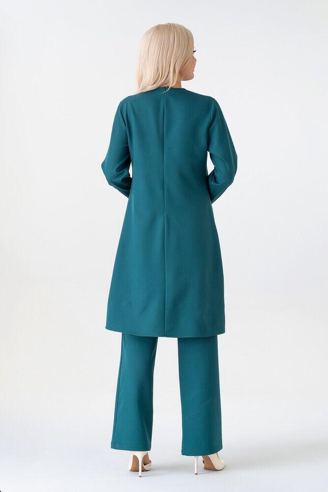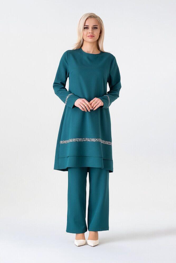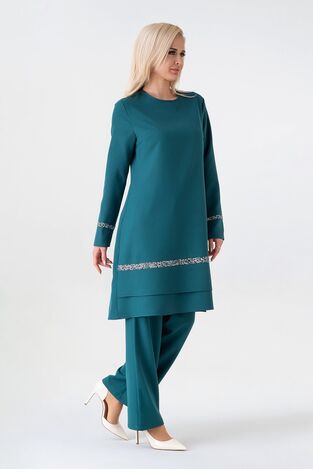Pantolon ve Tunik olarak iki parçadan oluşmaktadır. Rahat kalıptır. Krep kumaştan üretilmiştir. kırışmayan ve kolay ütülenebilir yapısı mevcuttur. 4 mevsim kullanıla bilir. Kendi bedeninizde sipariş vermeniz uygundur.
