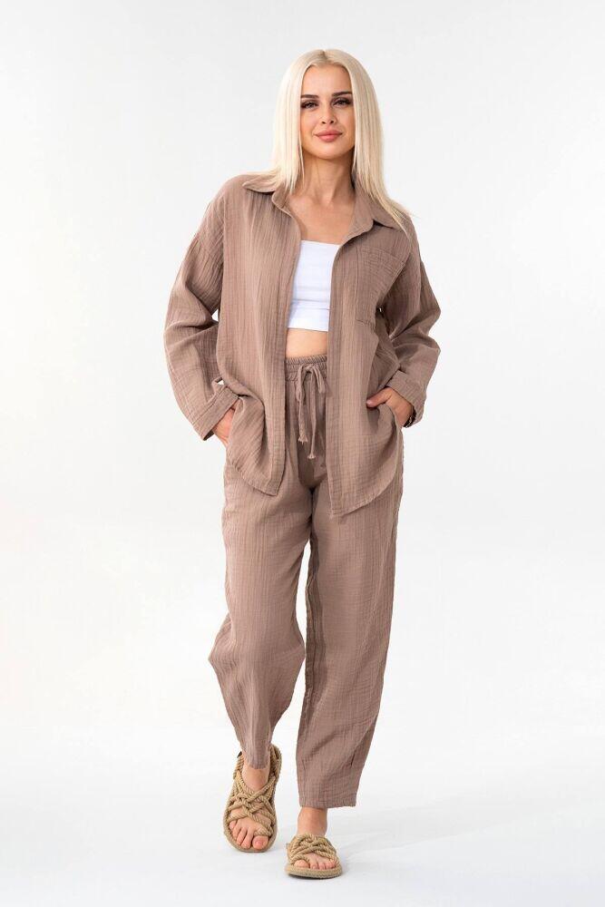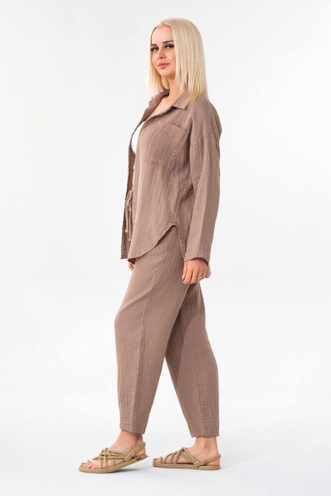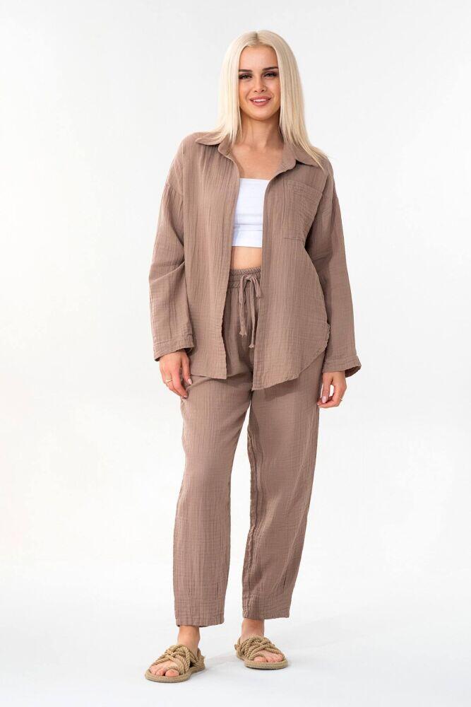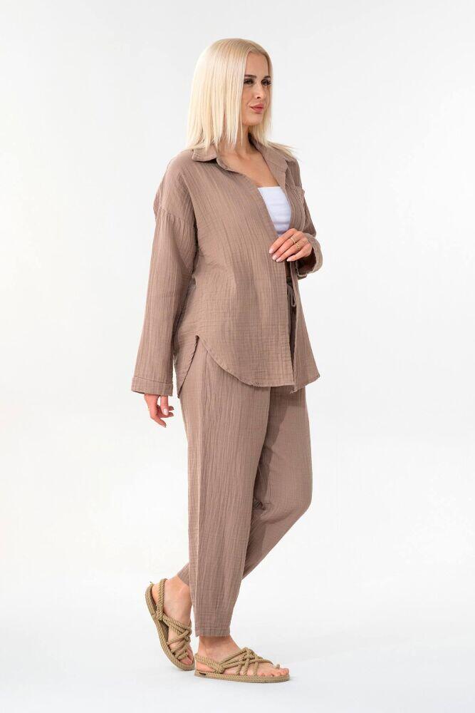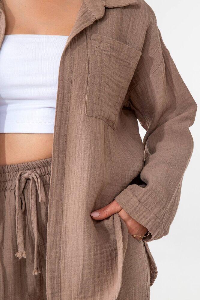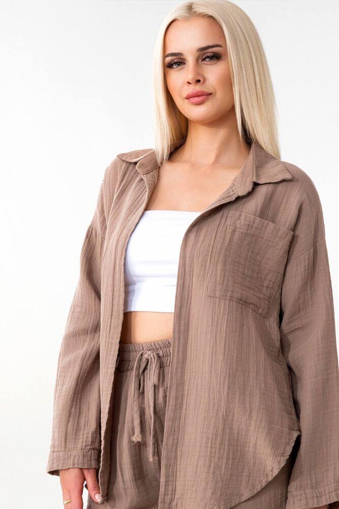 Tek Cep %100 Pamuk Kadın Müslin Gömlek - Vizon - WNR2599