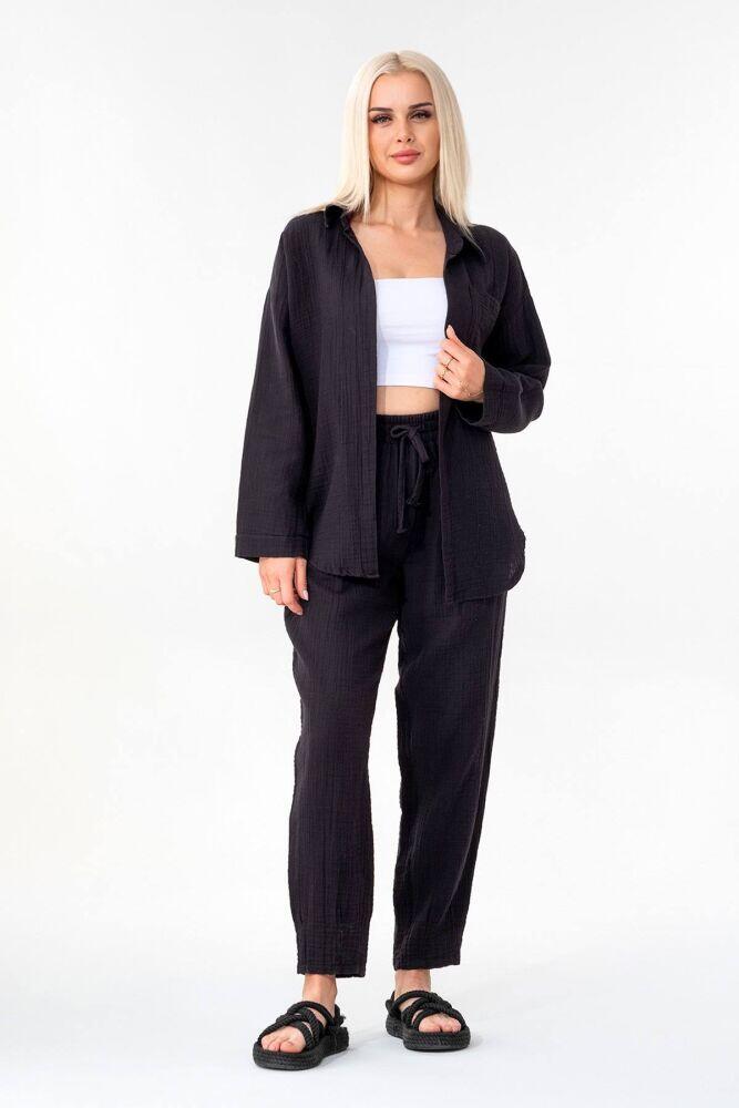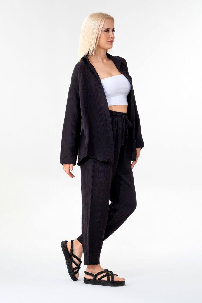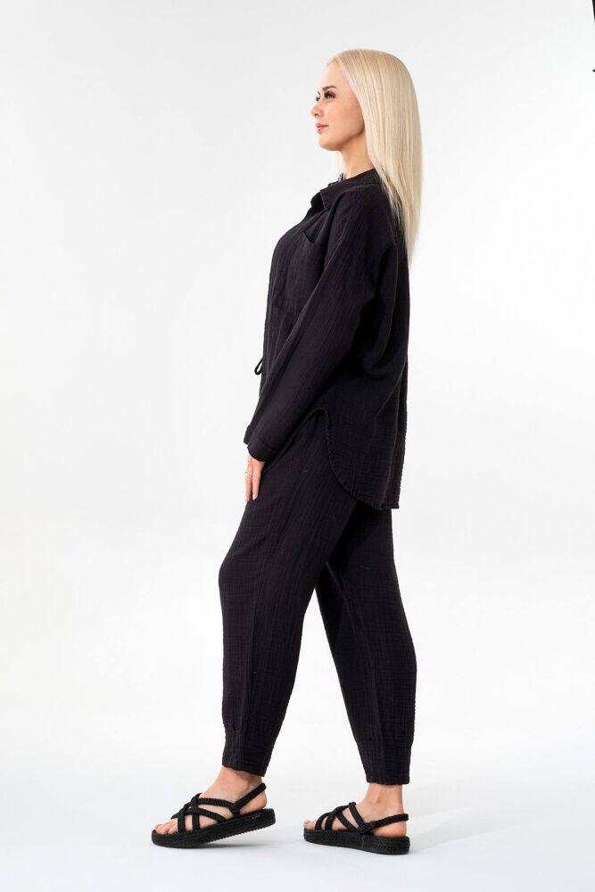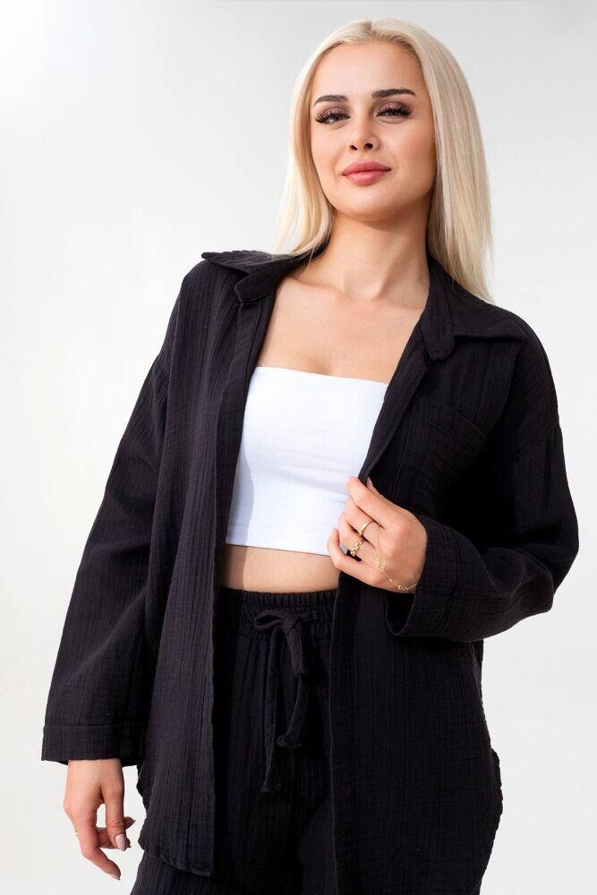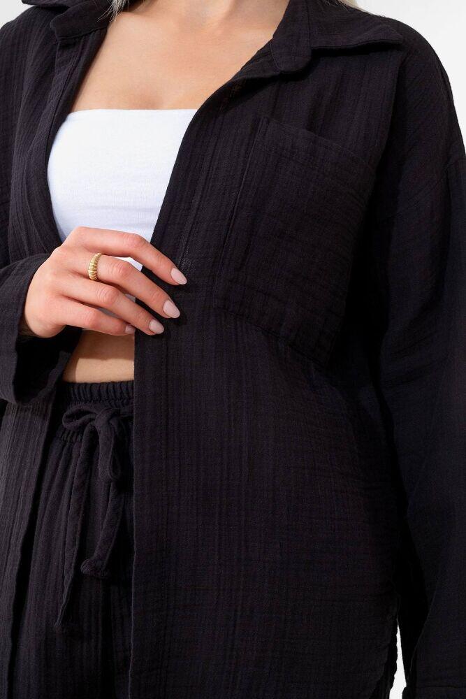 Tek Cep %100 Pamuk Müslin Gömlek - Siyah - WNR2599