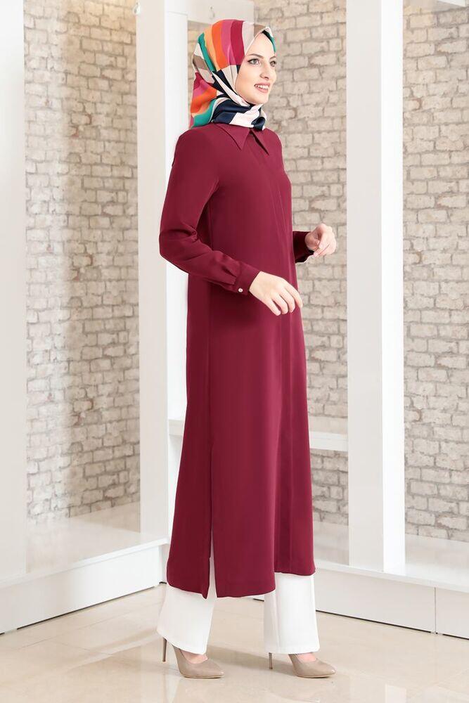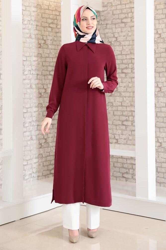 Uzun Krep Tunik Mürdüm - MDV2003 |