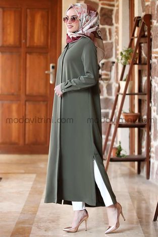 Uzun Krep Tunik - Pantolon Takım Haki - MDV2006 |