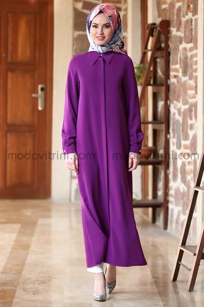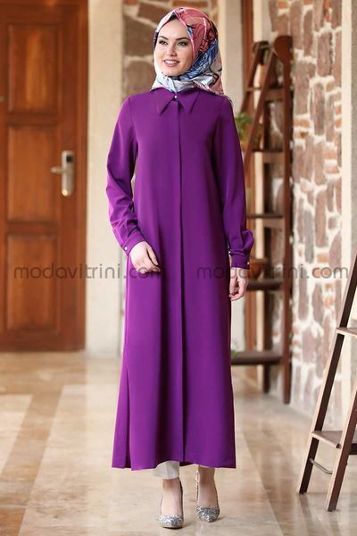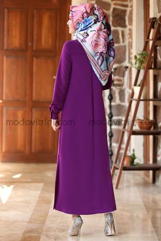 Costume - Longue Tunique & Pantalon - Crêpe - Violet - MDV2006 |