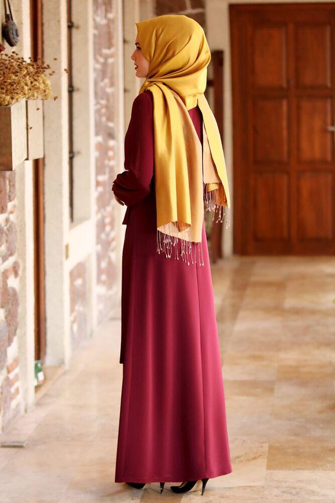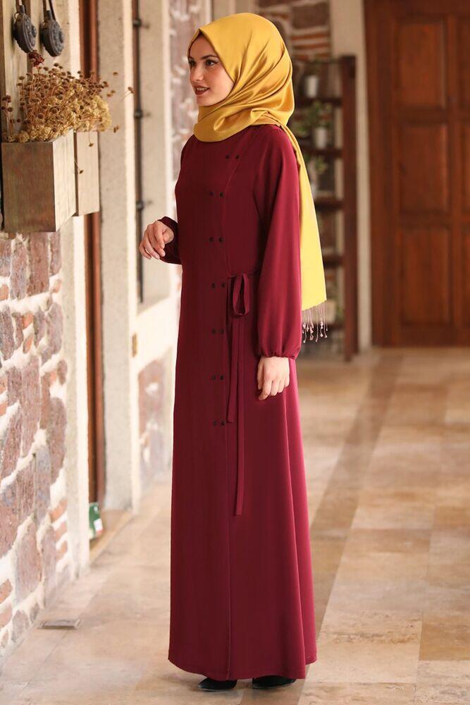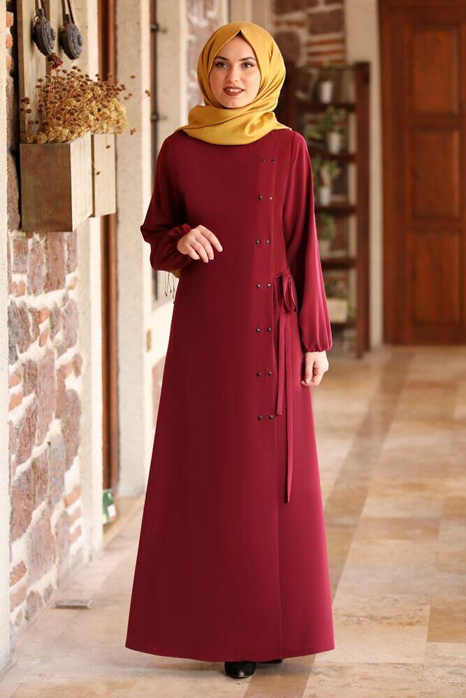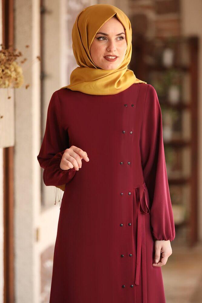 Yandan Çıtçıtlı Balon Kol Ferace Mürdüm FSC2052