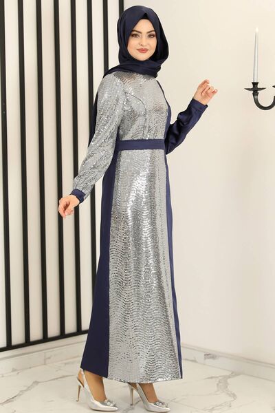 Yeni Firuze Abiye Elbise Lacivert - Fashion Showcase Design - FSC3021