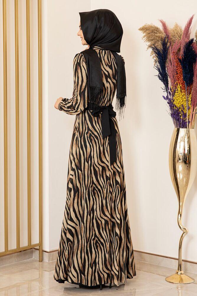 Zebra Desen Tül Elbise Siyah - Fashion Showcase Design - FSC2078