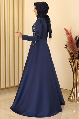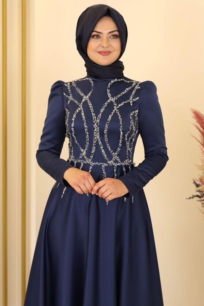 Zen Saten Abiye Lacivert - Fashion Showcase Design - FSC2131